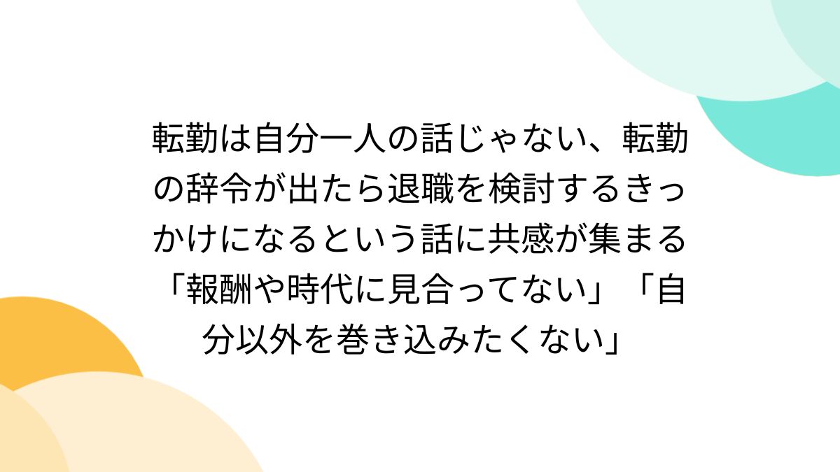 @TOCHOSHINCAウチは5回目の転勤で退職 関東→四国→北関東→九州 次が東北になりそうで 「もう無理!!!」ってなった 13年間マジで、マジで大変だった 特に生後5ヶ月の娘が居るのに四国から北関東への辞令出された時は本社に火を点けるところだった #Yahooニュース news.yahoo.co.jp/articles/ff06d…